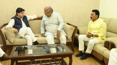 केंद्रीय मंत्री ज्योतिरादित्य सिंधिया ने राज्यपाल राजभवन पहुंचकर राज्यपाल मंगू भाई पटेल से मुलाकात की