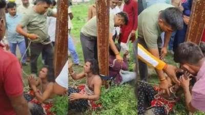 बच्चा चोरी के संदेह में भीड़ ने दो संदिग्ध व्यक्तियों को खंभे बंधकर पीटा