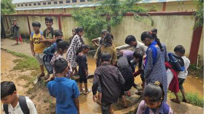 सड़क से लेकर कक्षा तक फैला पानी, अभिभावक बोले- बच्चों की सुरक्षा सबसे पहले