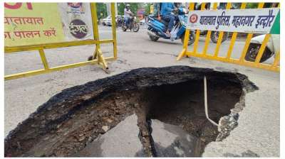 सड़क धंसी, निगम बोला एयरटेल की लापरवाही जिम्मेदार