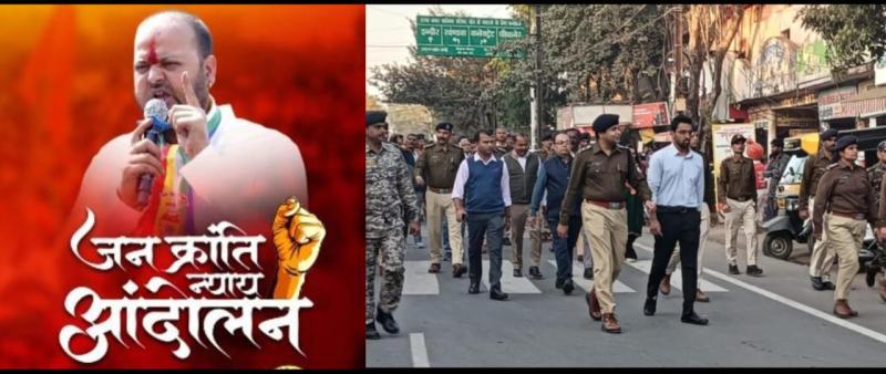 करणी सेना का जन क्रांति न्याय आंदोलन... प्रशासन ने निकाला फ्लैग मार्च