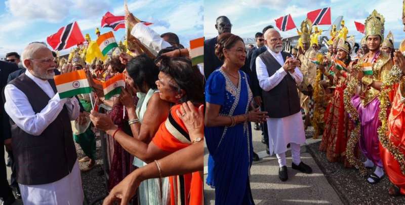 पीएम नरेंद्र मोदी पहली बार आधिकारिक दौरे पर त्रिनिदाद और टोबैगो पहुंचे है। पियारको इंटरनेशनल एयरपोर्ट पर उनका शानदार स्वागत हुआ। पीएम कमला बिसेसर, 38 मंत्री और चार सांसदों ने पीएम मोदी का गार्ड ऑफ ऑनर के साथ स्वागत किया। यह दौरा इसलिए भी खास है क्योंकि 1999 के बाद किसी पीएम मोदी का त्रिनिदाद का पहला द्विपक्षीय दौरा है। यह दौरा कमला परसाद-बिसेसर के न्योते पर हुआ है।