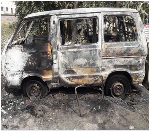 वैन में भरे थे नए कपड़े, पुलिस ने जलती हुई देखी