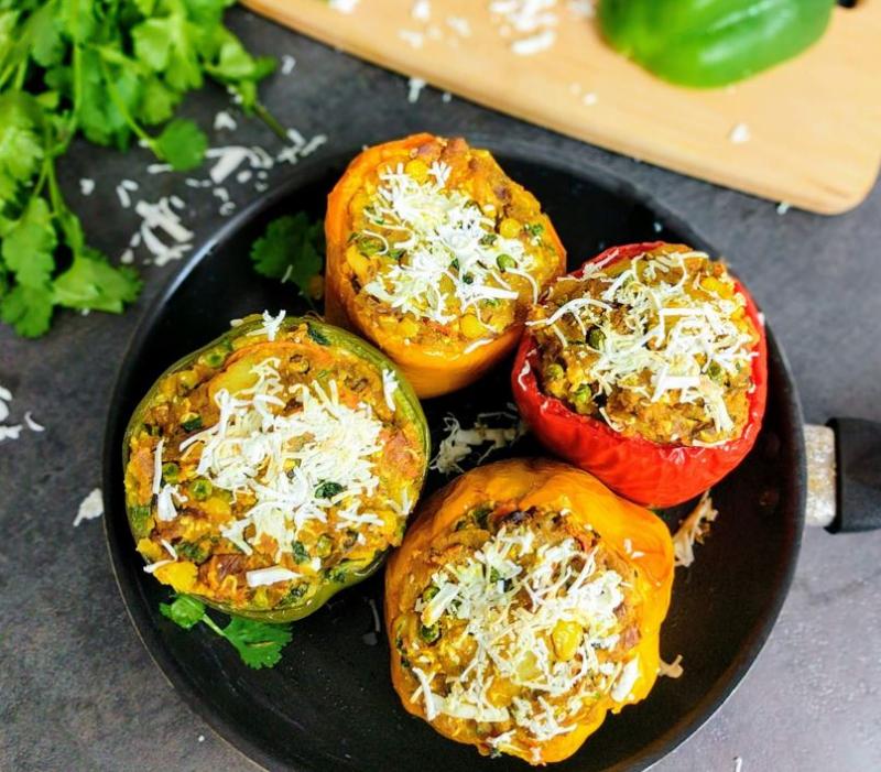 - इस मिश्रण को खोखली की हुई शिमला मिर्च में अच्छी तरह भरें।
