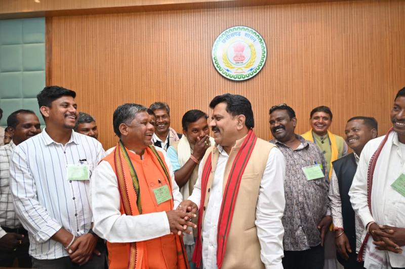 रायपुर : बस्तर संभाग से आए विभिन्न ग्राम पंचायतों के सरपंचगणों ने आज नवनिर्मित छत्तीसगढ़ विधानसभा भवन का भ्रमण कर विधानसभा की कार्यप्रणाली और लोकतांत्रिक प्रक्रियाओं को नजदीक से देखा। इस अवसर पर सरपंचों ने उपमुख्यमंत्री विजय शर्मा से मुलाकात भी की। बस्तर के जन जन में लोकतंत्र में विश्वास जगाने के लिए उपमुख्यमंत्री विजय शर्मा की पहल पर बस्तर संभाग के विभिन्न ग्रामों का प्रतिनिधित्व करने वाले सरपंचों को नवीन विधानसभा भवन का भ्रमण कराया गया।
