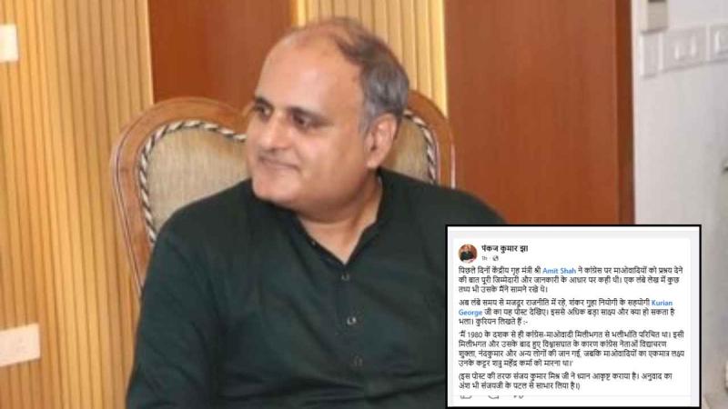 भिलाई के लेखक जॉर्ज कुरियन ने पोस्ट शेयर कर नक्सलवाद को लेकर कांग्रेस पर गंभीर आरोप लगाए हैं. वहीं CM विष्णु देव साय के मीडिया सलाहकार पंकज झा ने उनके पोस्ट को रिपोस्ट करते हुए लिखा- पिछले दिनों केंद्रीय गृह मंत्री Amit Shah ने कांग्रेस पर माओवादियों को प्रश्रय देने की बात पूरी जिम्मेदारी और जानकारी के आधार पर कही थी. एक लंबे लेख में कुछ तथ्य भी उसके मैंने सामने रखे थे. अब लंबे समय से मजदूर राजनीति में रहे, शंकर गुहा नियोगी के सहयोगी Kurian George जी का यह पोस्ट देखिए.
