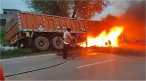 भिलाई में चलती ट्रक में लगी भीषण आग