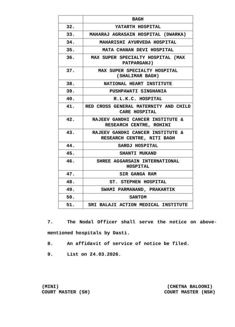 अदालत के आदेश के अनुसार अस्पतालों को:
