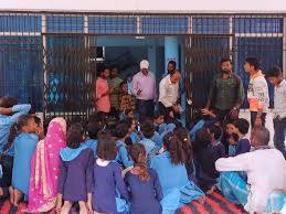 शिक्षिका के खिलाफ ग्रामीणों का प्रदर्शन, स्कूल में लगाया ताला