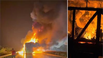 हैदराबाद-बेंगलुरु हाईवे पर भीषण हादसा, बाइक से टक्कर के बाद बस में लगी आग, 11 लोगों की मौत