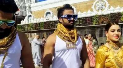 25 किलो सोना पहनकर तिरुमाला वेंकटेश्वर मंदिर में दर्शन पहुंचे गोल्डन गाइज