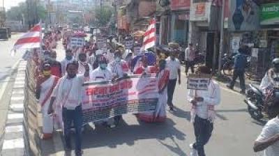 भोपाल में कांग्रेस ने किया अनोखा विरोध, महिलाओं को बांटे लकड़ी के चूल्हे