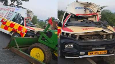 तेज रफ्तार एंबुलेंस ने ट्रक को मारी टक्कर, हादसे में डॉक्टर और ड्रेसर की मौत, छह लोग घायल