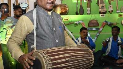 मांदर बजाते हुए कलाकारों के साथ थिरके मुख्यमंत्री साय