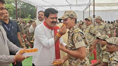 मुख्यमंत्री की भेजी मिठाई लेकर जवानों के बीच पहुंचे मंत्रीगण