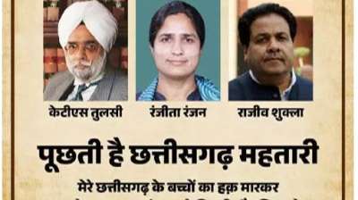 रायपुर । बीजेपी ने कांग्रेस राज्य सभा सांसदों को लेकर कसा तंज, लापता वाला पोस्टर किया जारी बीजेपी ने x पर पोस्ट कर लिखा । छत्तीसगढ़ियों का हक मारने वाले कांग्रेसियों...