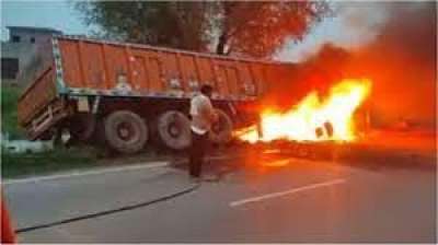 भिलाई में चलती ट्रक में लगी भीषण आग